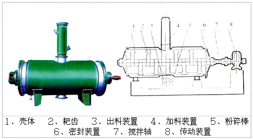 具有結(jié)構(gòu)簡(jiǎn)單,操作方便,使用周期長(zhǎng),性能穩(wěn)定可靠,蒸汽耗量小,適用性能強(qiáng),產(chǎn)品質(zhì)量好,特別適用于不耐高溫、易燃、調(diào)溫下易氧化的膏狀物料的干燥,該機(jī)經(jīng)用戶長(zhǎng)期使用證明是一良好的干燥設(shè)備。原理:被干燥物料從殼體上方正中間加入,在不斷正反轉(zhuǎn)動(dòng)的耙齒的攪拌下,物料軸向來(lái)回走動(dòng),與殼體內(nèi)壁接觸的表面不斷更新,受到蒸汽的間接加熱,耙齒的均勻攪拌,粉碎棒的粉碎,使物料表面水分更有利的排出,氣化的水分經(jīng)干式除塵器、濕式除塵器、冷凝器,從真空泵出口處放空。結(jié)構(gòu):真空耙式干燥機(jī)的主要部件